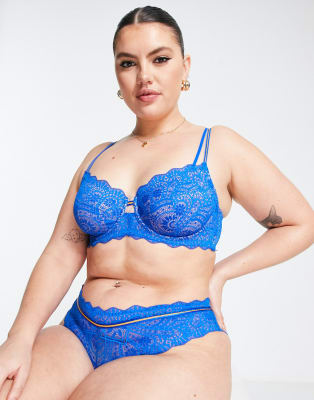 Dorina Curve Destiny recycled nylon blend lace lingerie set in blue