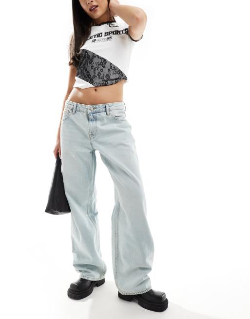 Dr Denim Hill relaxed fit low waist wide straight leg jeans in canyon pale worn wash