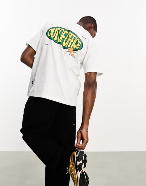 Dr Denim Trooper relaxed fit short sleeve t-shirt with 'out of office' graphic print in off white