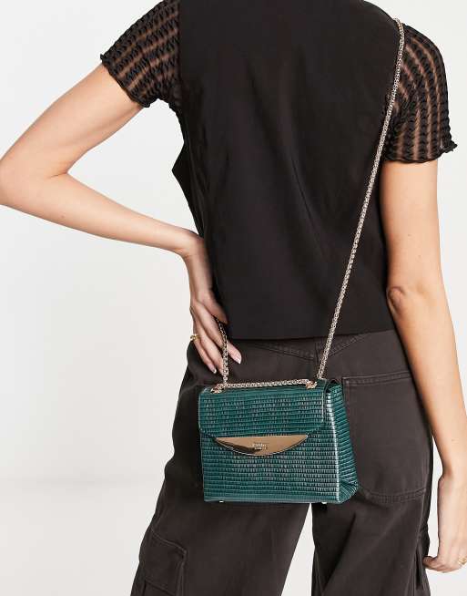 Dune lizard PU cross body bag in dark green