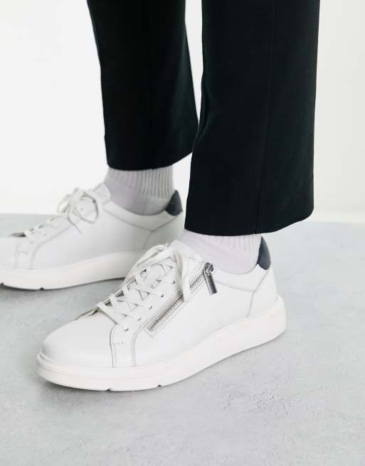 Dune London zip side sneakers in white