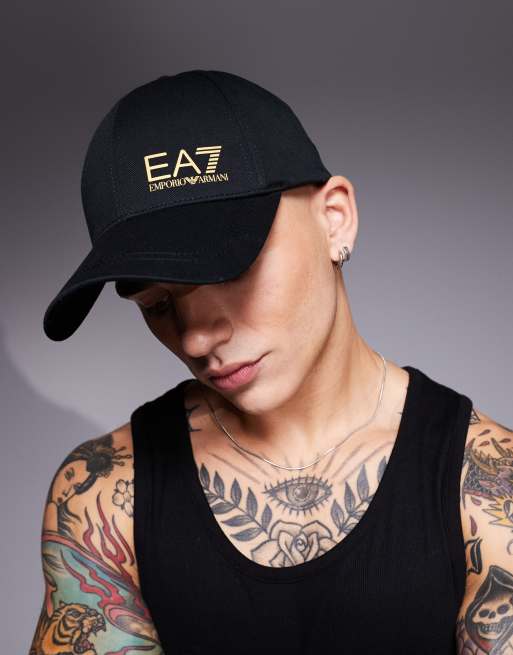 Armani EA7 logo baseball cap in black and gold