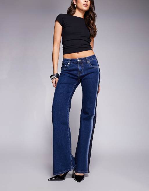 Edikted Airbrushed low-rise flared jeans in dark blue washed