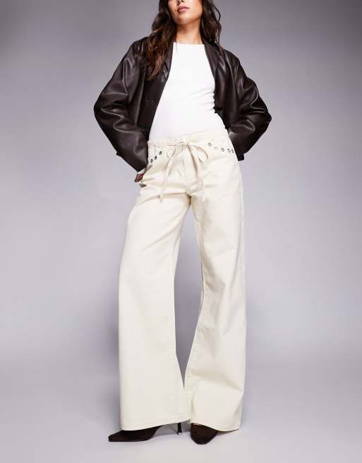 Edikted Grommet tie low rise jeans in beige