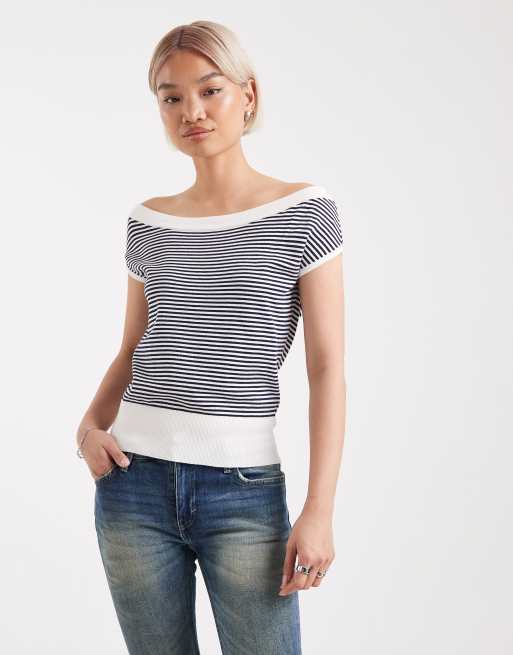 Edikted Lottey striped off shoulder knit top in multi