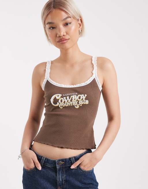 Edikted Nashville cowboy graphic tank top in brown