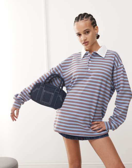 Edikted oversized collared rugby style top in blue stripe