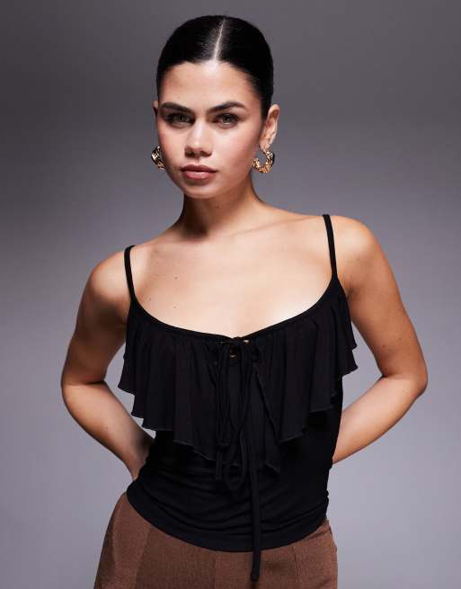 Edikted ruffle tank top in black