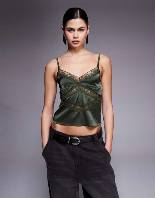 Edikted Tamar satin effect lace detailed tank top in olive