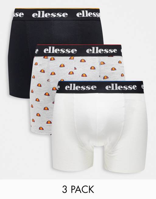 ellesse 3 pack logo boxers in black white and grey