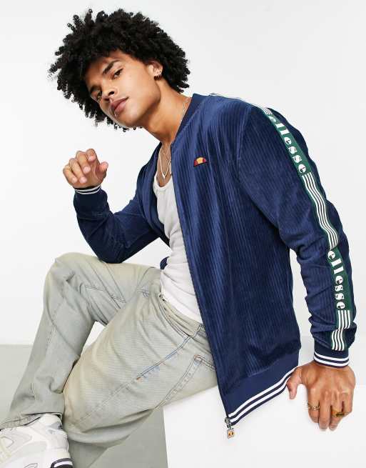ellesse cord zip thru sweat with taping in navy