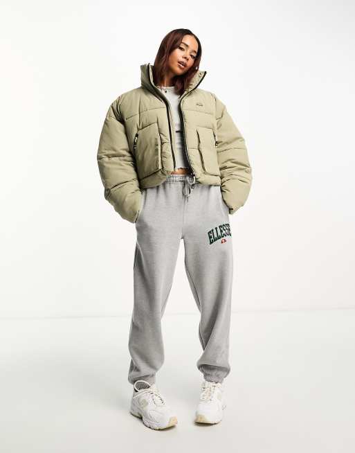 ellesse Guera cropped puffer jacket in khaki