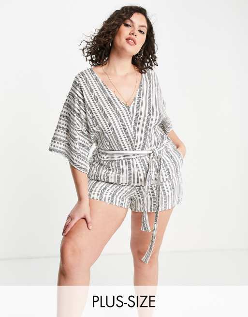 En Crème Plus v-neck wide sleeve playsuit in stripe