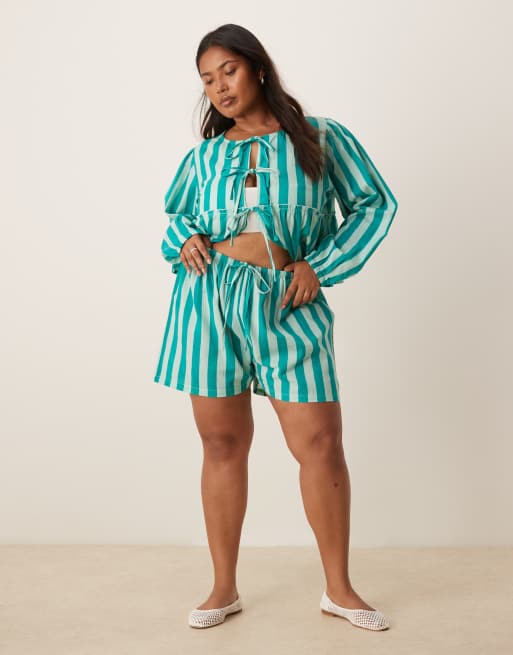 Esmee Curve Exclusive beach set in green stripe