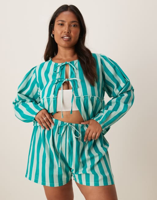 Esmee Curve Exclusive beach shorts in green stripe (part of a set)