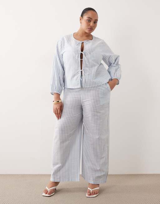 Esmee Curve tie front beach pants in blue & white stripe (part of a set)