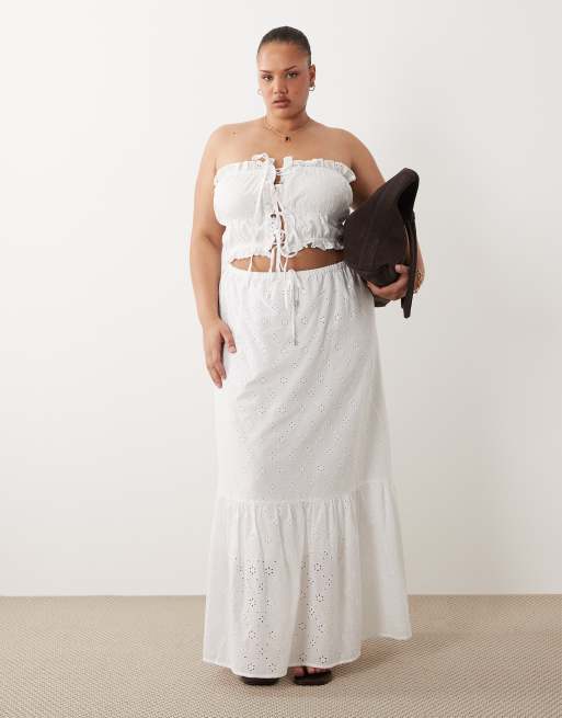 Esmee Curve tie front maxi broderie beach skirt in white