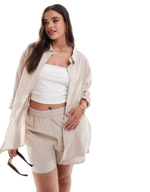 Esmee Exclusive Curve textured oversized long sleeve beach shirt in oat