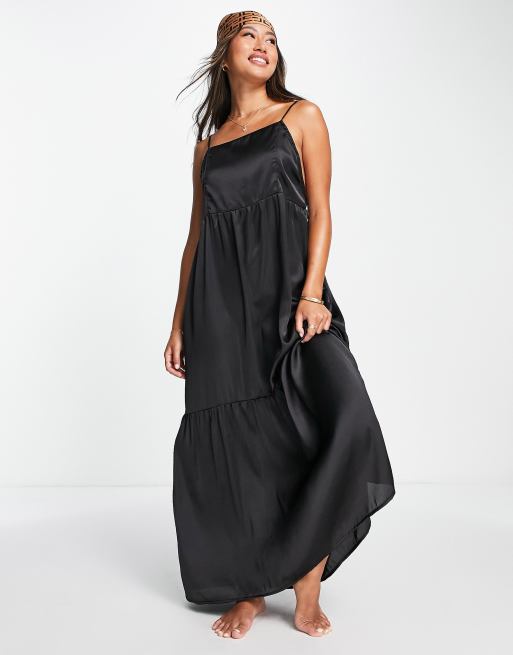 Esmee Exclusive beach maxi tiered summer dress with low back in black