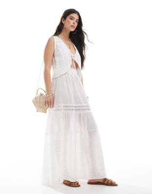 Esmee Exclusive lace panel tiered maxi beach skirt in white
