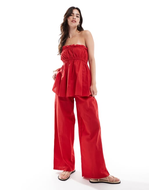 Esmee Exclusive relaxed leg linen blend pants in red