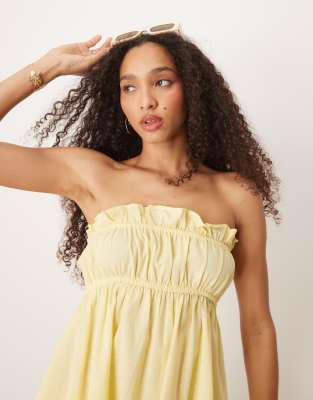 Esmee Exclusive ruched bandeau linen blend top in butter yellow