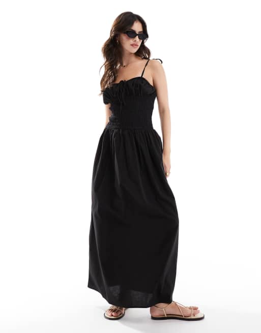 Esmee Exclusive shirred detail beach dress in black