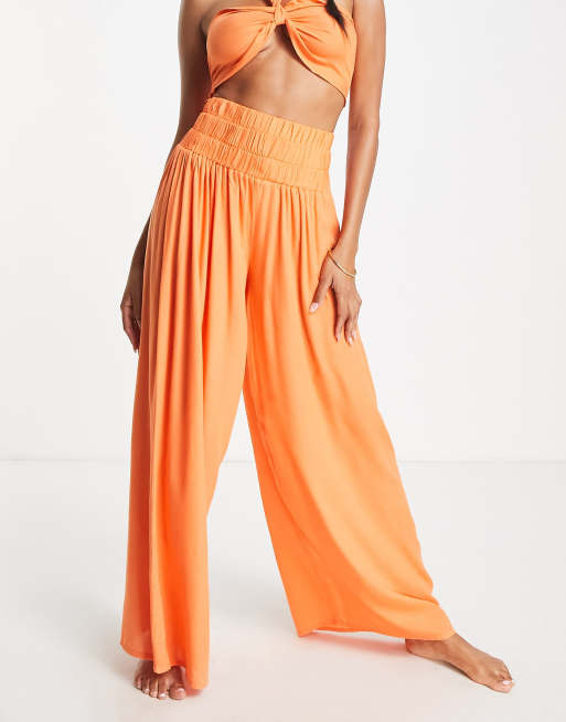 Esmee Exclusive shirred wide leg beach pants in orange (part of a set)