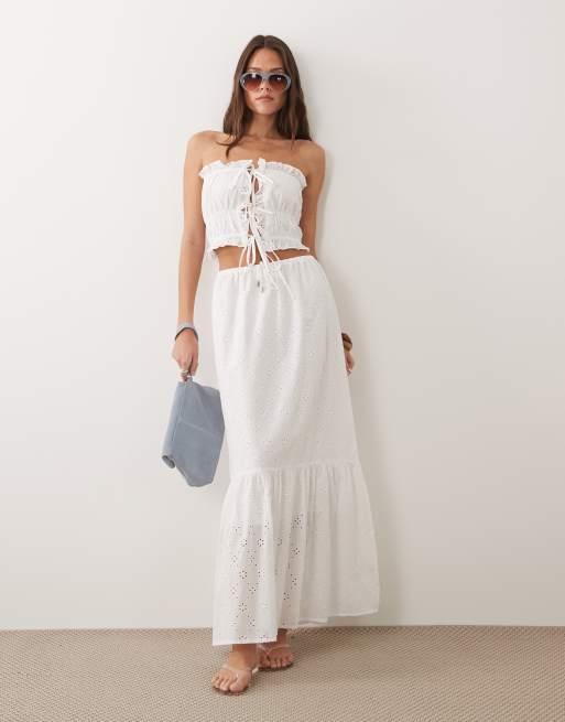 Esmee tie front maxi broderie beach skirt in white