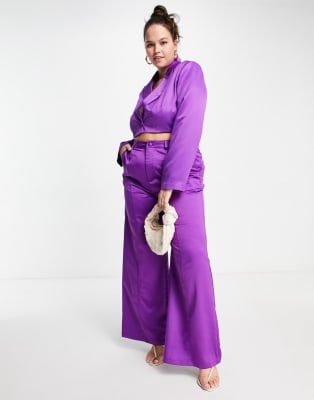 Extro & Vert Plus cropped blazer and pants set in winter plum satin
