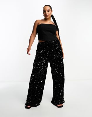 Extro & Vert Plus slouchy velvet sequin pants in black