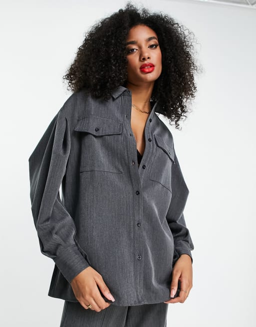 Extro & Vert structured bodycon dress and oversized shirt set in herringbone