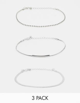 Faded Future 3 pack ball, flat and snake chain bracelets in silver