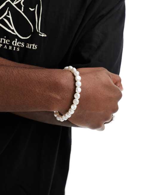 Faded Future elasticated pearl bracelet in white