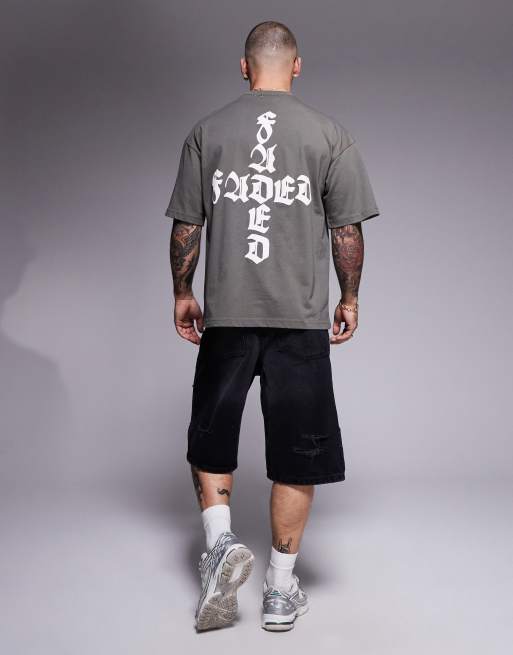 Faded Store script logo back t-shirt in olive