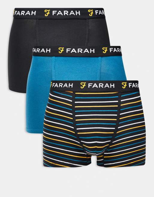Farah 3 pack jacquard waistband logo boxers in stripe, black and blue