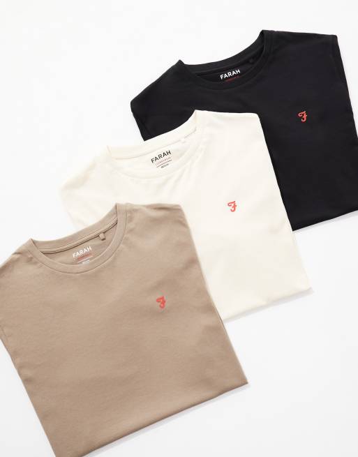 Farah 3-pack logo t-shirts in cream, beige and black