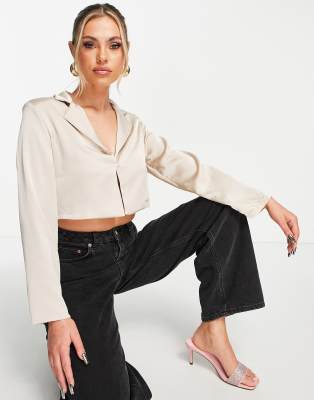 Femme Luxe satin clasp detail shirt in beige