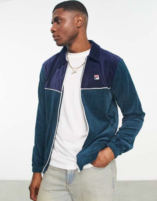 Fila cord zip through sweatshirt with logo in green and navy