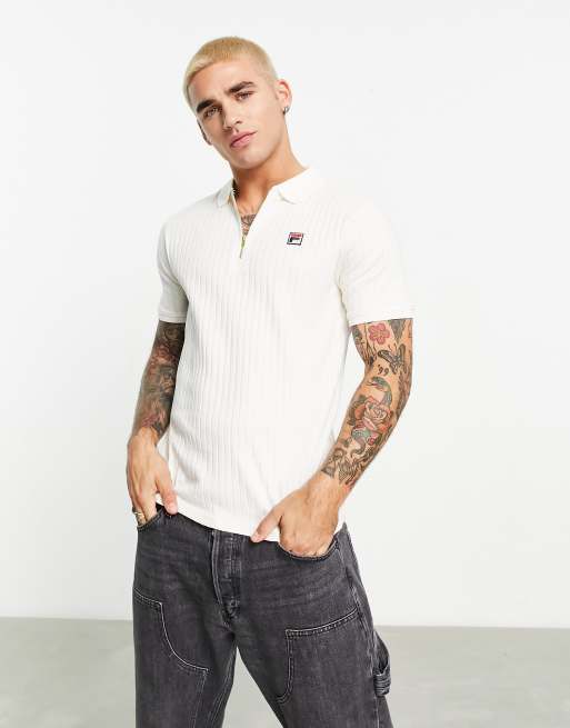 Fila knitted 1/4 zip polo in cream