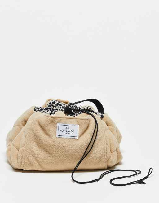 The Flat Lay Co. x ASOS EXCLUSIVE Drawstring Makeup Bag - Beige Borg with Cheetah
