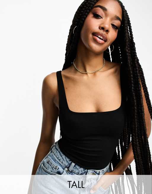 Flounce London Tall basic square-neck slinky body in black