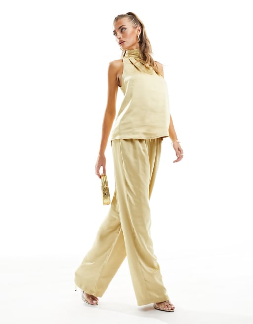 Flounce London satin top and floaty pants set in gold