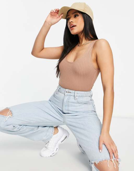 Flounce scoop back and front neck body in taupe