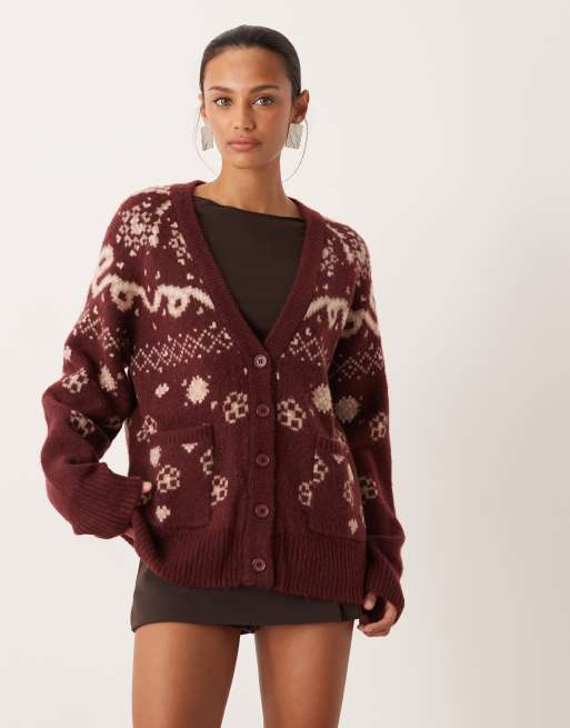 For Love & Lemons knitted oversized button down cardigan in burgundy