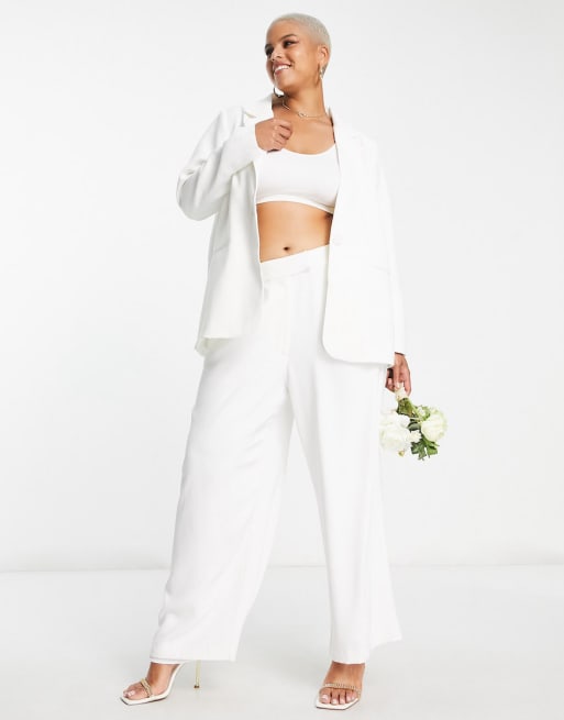 Forever New Curve Bridal oversized blazer and suit pants set in ivory