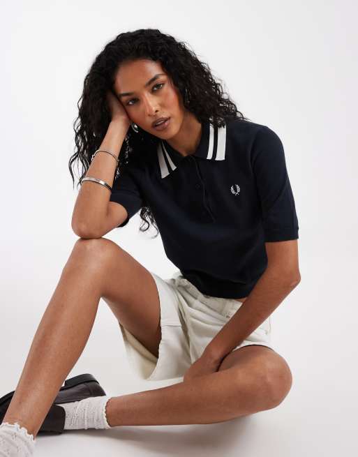Fred Perry bold twin tipped knitted polo shirt in navy