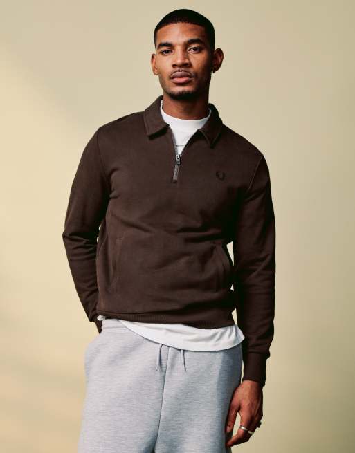 Fred Perry half zip sweatshirt in dark brown with collar detail