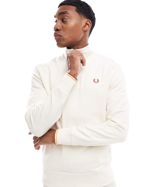Fred Perry half zip sweatshirt in off white