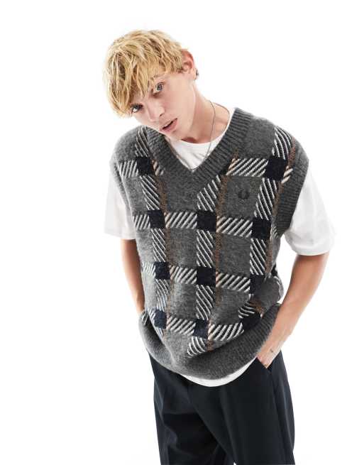 Fred Perry knitted check tank in grey